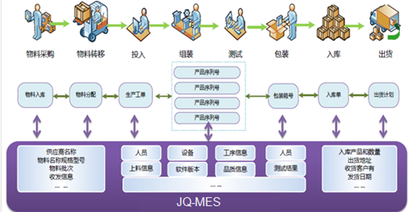 品質(zhì)管理:MES跟蹤原材料進(jìn)廠到成品入庫(kù)的整個(gè)生產(chǎn)流程,對(duì)產(chǎn)品原料、生產(chǎn)設(shè)備、操作人員、工序批次等數(shù)據(jù)實(shí)時(shí)采集,為產(chǎn)品的使用、改進(jìn)設(shè)計(jì)及質(zhì)量控制提供依據(jù);根據(jù)檢測(cè)結(jié)果確定產(chǎn)品問題、提供相應(yīng)的決策支持。