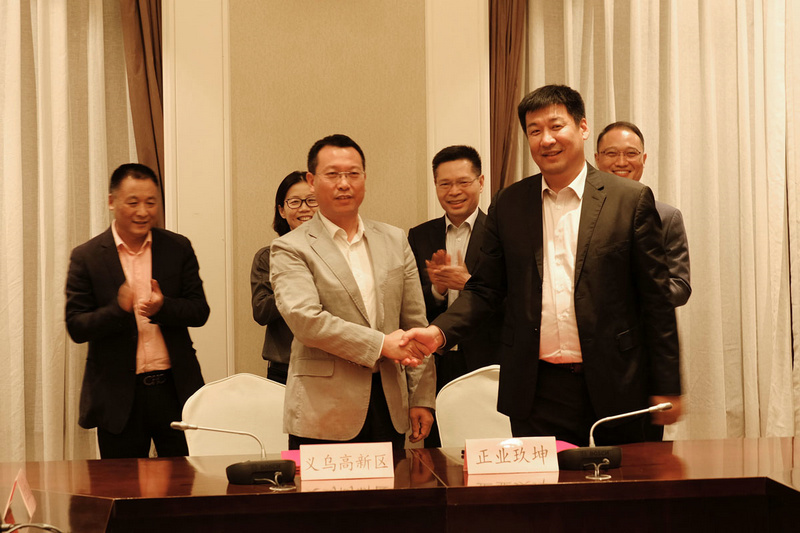 義烏市賈文紅副市長、市經信局曹耿局長,義商總會周福云會長及正業科技集團董事長徐地華,深圳正業玖坤執行董事、總經理龐克學等出席簽約儀式。